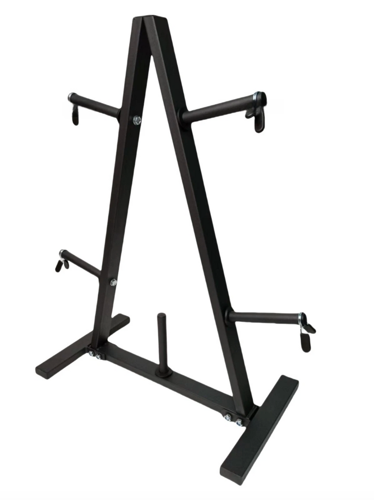 Clear the clutter and create more workout space with this compact weight storage solution. Built to accommodate both Olympic and standard plates, as well as barbells, this rack is perfect for keeping your gym neat and functional. Crafted from heavy-duty steel and finished in sleek black, it’s tough enough for regular use while adding a professional touch to your setup. Its smart, space-saving design fits neatly in any home gym without dominating the room.
